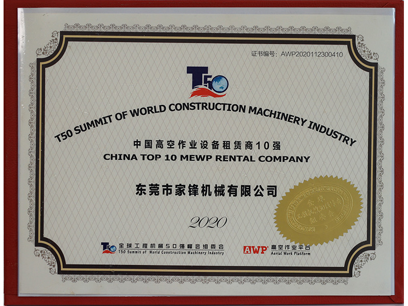 東莞市家鋒機(jī)械有限公司成立于2016年,是專業(yè)的高空作業(yè)平臺租賃、銷售服務(wù)商,擁有徐工、中聯(lián)、吉尼、捷爾杰等國內(nèi)外知名品牌的高空作業(yè)設(shè)備八千多臺,連續(xù)四屆榮膺“中國高空作業(yè)設(shè)備租賃商十強(qiáng)企業(yè)”及“中國高空作業(yè)平臺租賃業(yè)十大品牌”,并于2021年首次榮膺“中國工程機(jī)械租賃商十強(qiáng)”,是立足華南、輻射全國、規(guī)模大、服務(wù)優(yōu),極具競爭力和影響力的企業(yè)。短短幾年,已相繼與世界機(jī)械巨頭徐工集團(tuán)、中聯(lián)重科達(dá)成戰(zhàn)略合作。